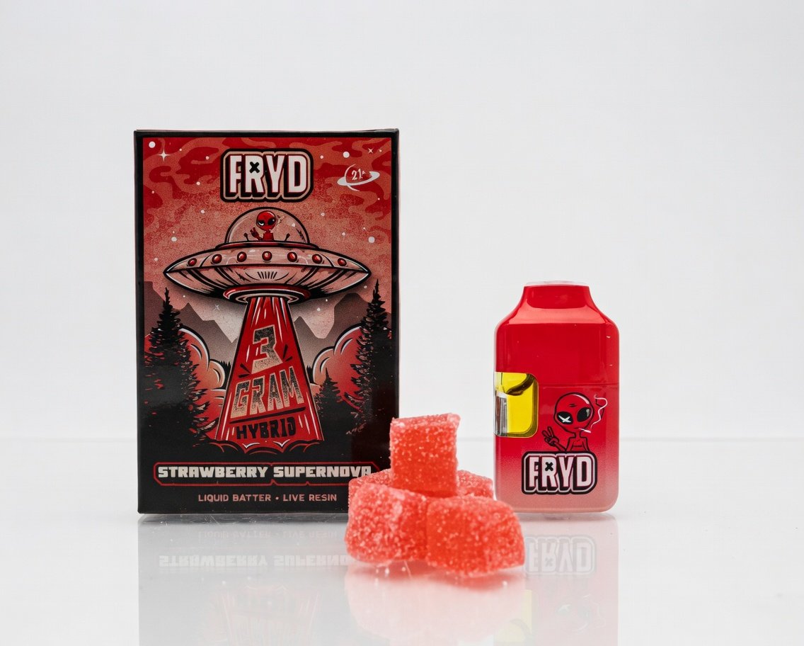 Fryd Strawberry Supernova is part of the evolving line of fryd edible gummies, combining sweet, juicy strawberry flavor with a carefully balanced hybrid formulation. Unlike traditional edibles, this product is often paired with fryd carts 3g, fryd disposable 2g with gummies, and fryd 3g with gummies, creating a dual-experience package that appeals to modern consumers.